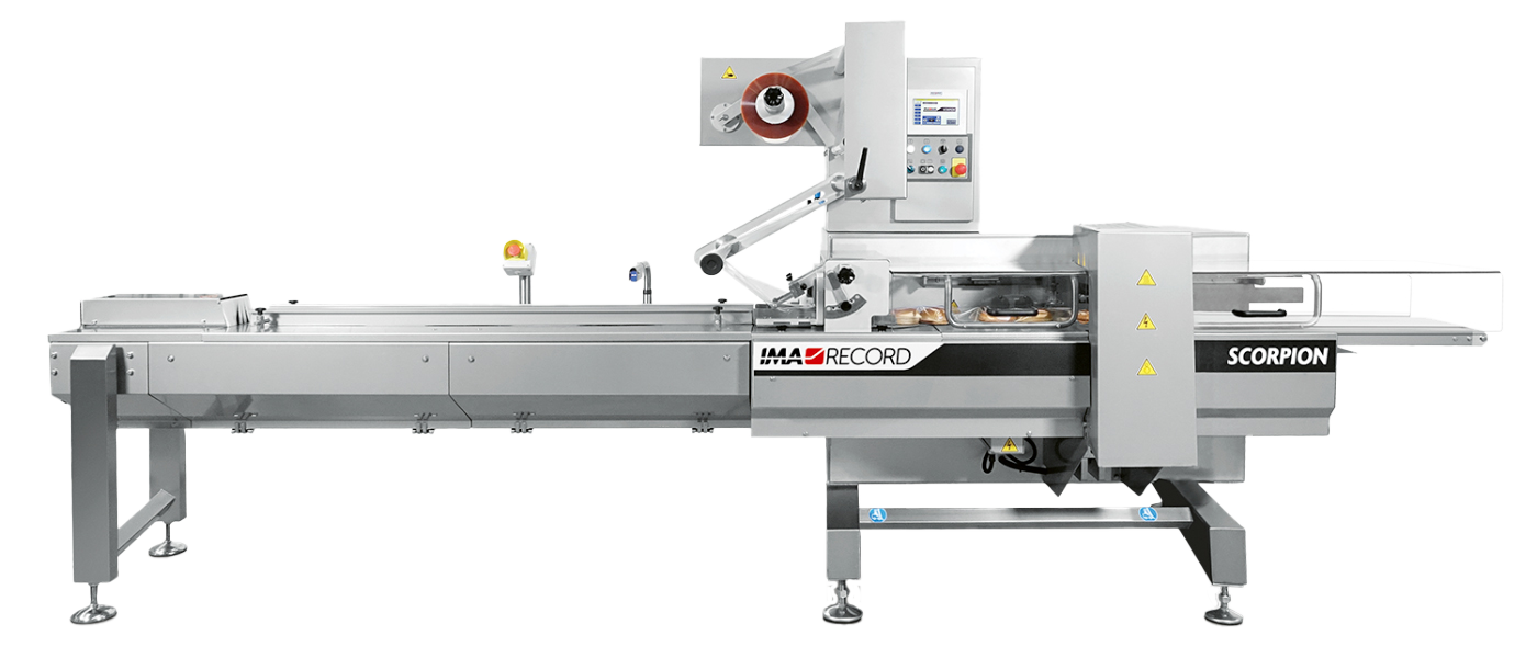 The IMA Record Jaguar is a high-speed, horizontal flow pack machine designed for versatile use. It packages food, pharmaceutical, and consumer products in fin-seal wrapping and can be equipped with MAP for extended shelf life.